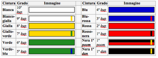 Le cinture - Taekwondo